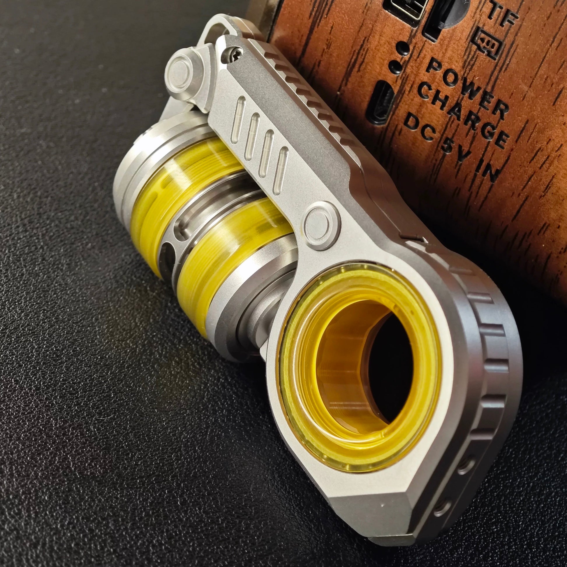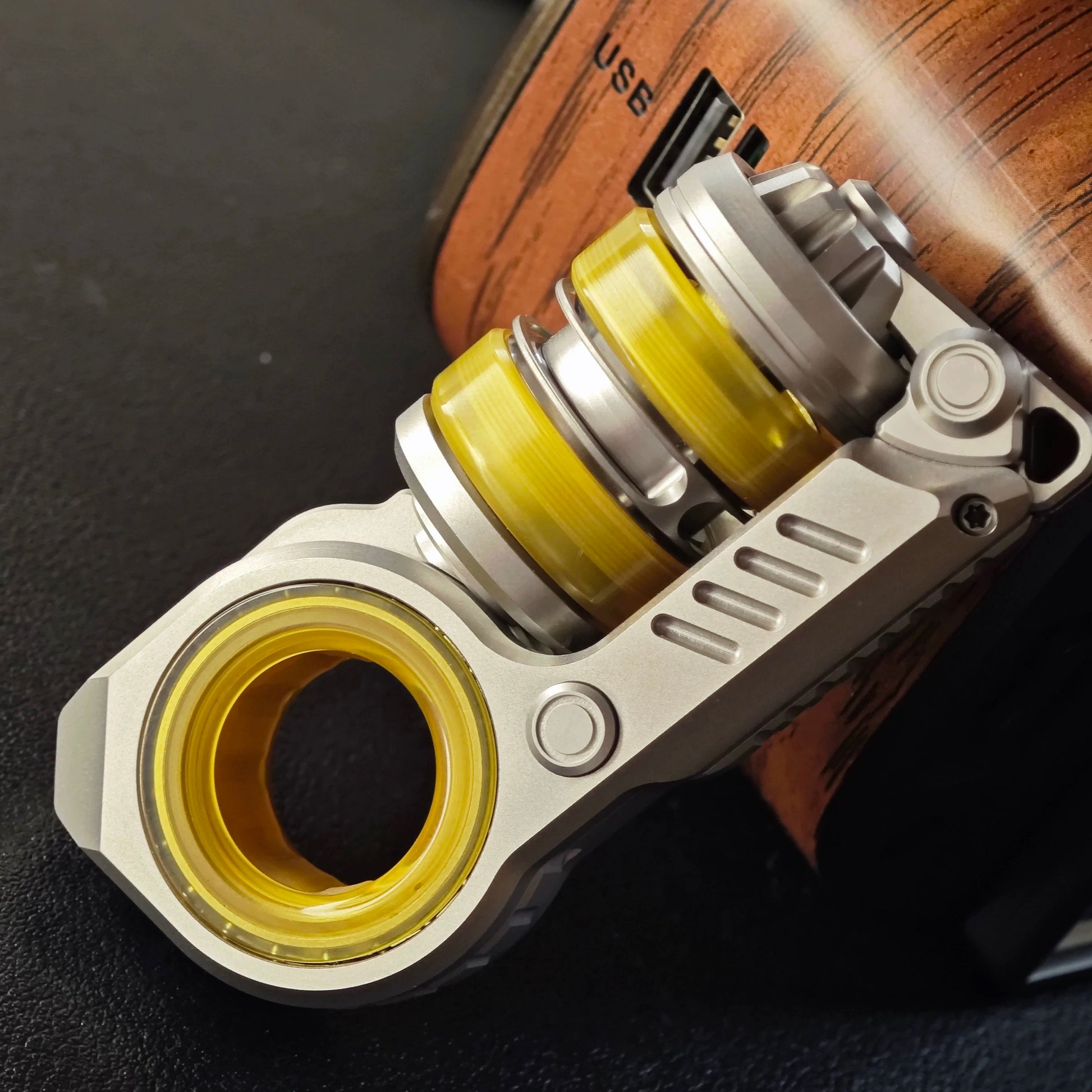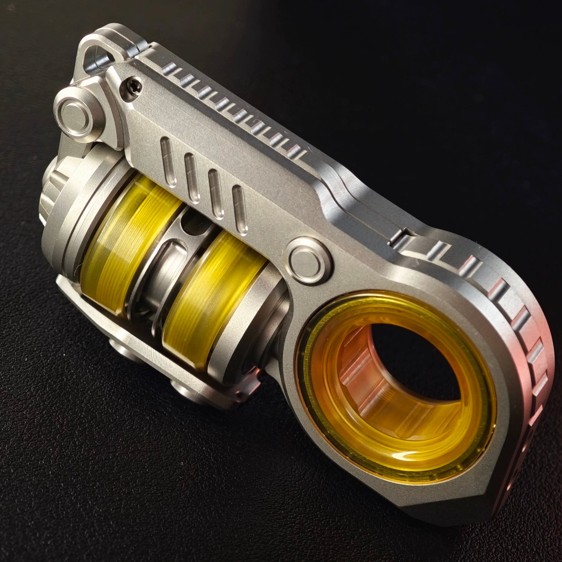 Engineered for those who crave mechanical perfection, the Cyclone Gear EDC fidget spinner delivers both performance and visual impact. Crafted from aerospace-grade aluminum alloy with dual amber polycarbonate rollers and a high-torque spinning ring, this piece combines industrial design with smooth tactile feedback.